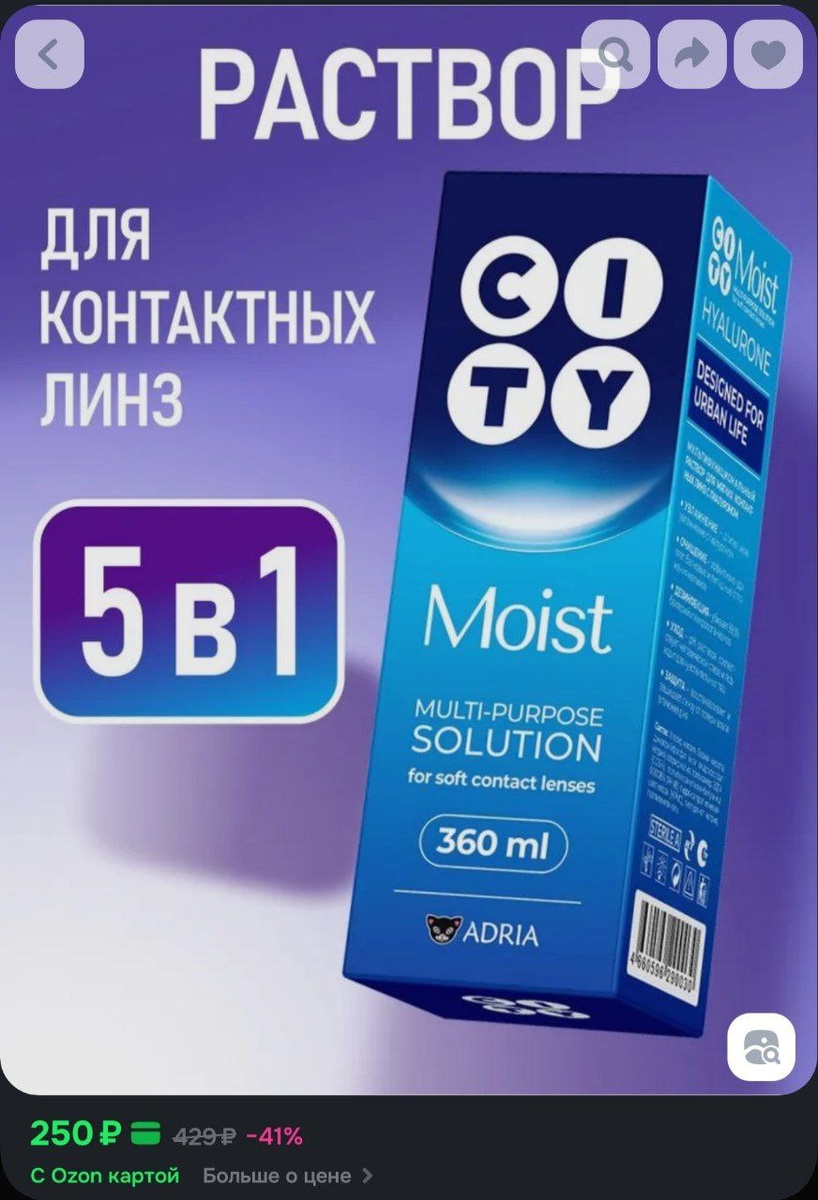 Раствор для контактных линз ADRIA City Moist 360 мл за 250₽ https://ozon.ru/t/HU93sQ5