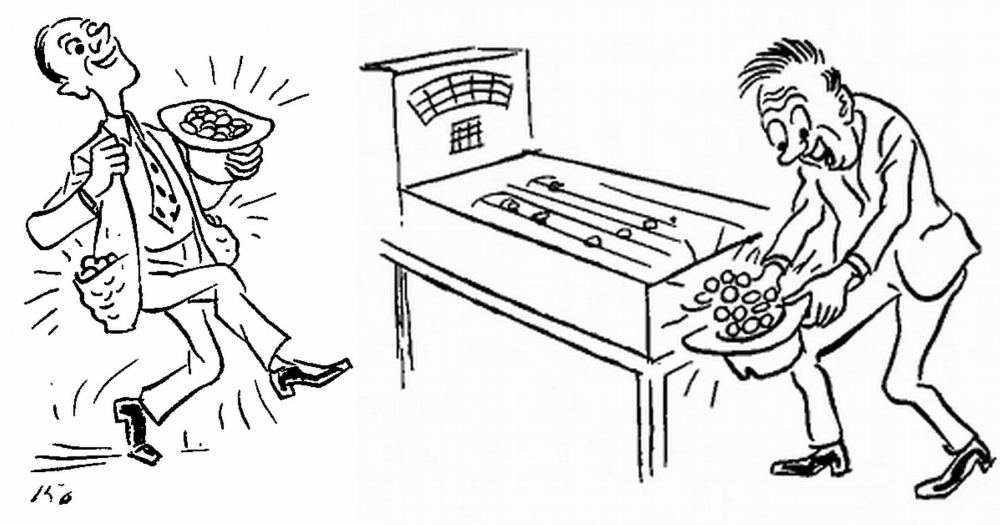 Продолжаем знакомство с галереей произведений датского художника-карикатуриста Херлуфа Бидструпа (1912—1988). На этот раз речь пойдёт про азартные игры. В нескольких комиксах по этой теме Бидструп неплохо показывает, что, как говорится, «заведение выигрывает всегда», вне зависимости от результатов игры. Даже в самом «счастливом» варианте игрок выигрывает только целую стаю бессмысленных и явно ненужных ему плюшевых собак... В остальных случаях он не получает и этого. ❗️❗️❗️ Не забывайте подписаться и включить колокольчик 🔔, так как Дзен показывает новые статьи только менее 4% подписчиков, у которых не включены уведомления 🎈 ПРИМИТЕ ДЕЯТЕЛЬНОЕ УЧАСТИЕ В РАБОТЕ БЛОГА