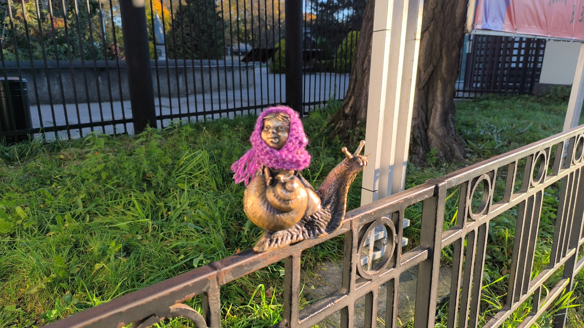 Район Амалиенау это исторический район Калининграда, который был сформирован в начале XX века как район-сад с виллами в стиле югендстиль и неоклассицизм. Район известен своей уникальной архитектурой, которая во многом сохранилась после Второй мировой войны, и сохранил атмосферу старого Кёнигсберга. Именно в этот район я хотела попасть с хорошим экскурсоводом. Можно прогуляться и самому, но что толку смотреть на красивые дома и не понимать их историю? По пути к месту встречи я прошла мимо зоопарка, где нашла катающуюся на улитке Улю. И мимо целой группы объектов, посвящённых космонавтам. Экскурсия началась в Центральном парке, раз уж мы собрались около него. Лесная часть скрывает остатки исторической полуротонды 1874 года, старый двухсотлетний дуб и перенесённый сюда в конце 19 века охотничий замок Роминтен кайзера Вильгельма II. От парка мы пошли по улице Красной, где стоят многоквартирные жилые дома. Большинство зданий на этой улице спроектировал архитектор Фридрих Хайтманн и она сч
