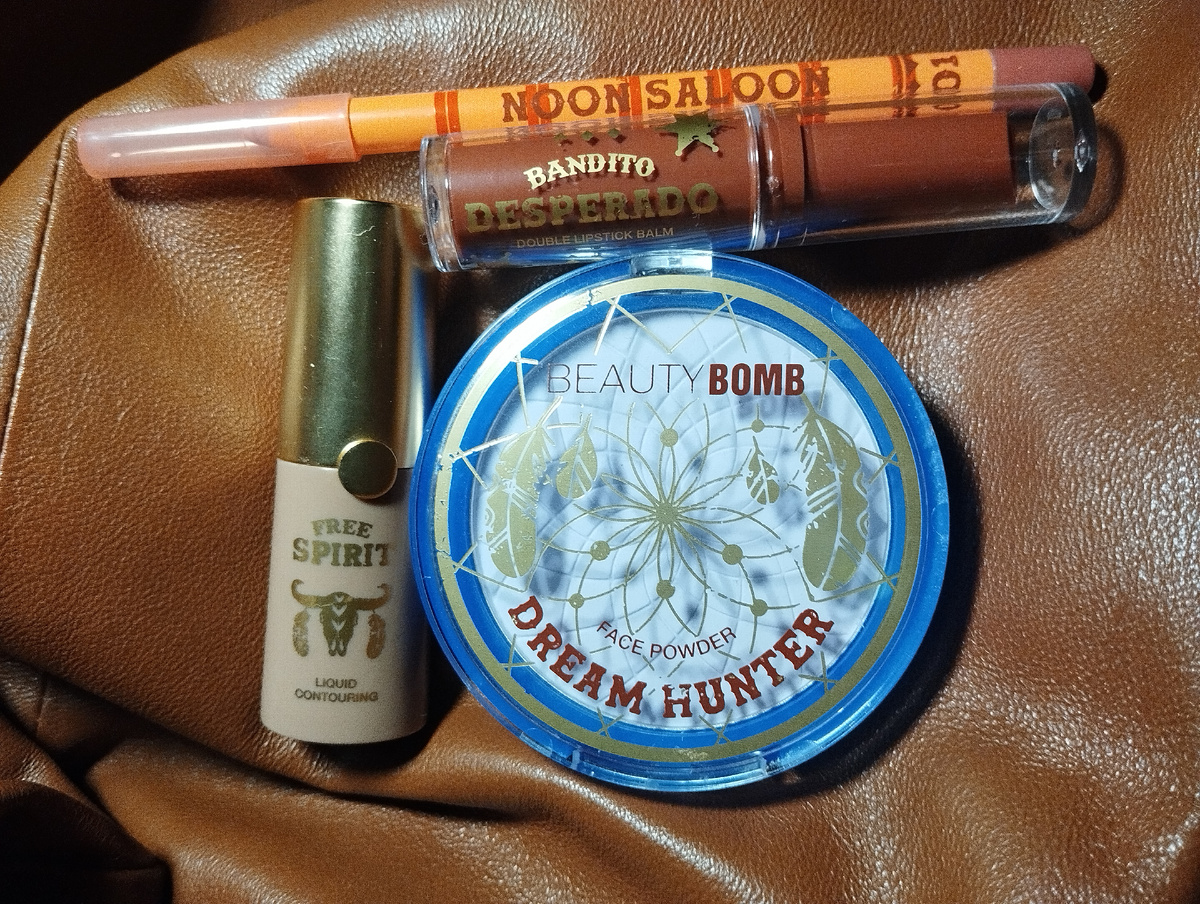 Привет! Давно не писала, но сегодня есть отличный повод – новая коллекция от Beauty Bomb под названием Rancho! 1. Карандаш BEAUTY BOMB noon saloon в оттенке 01 A. Morgan Этот гелевый карандаш – стойкая классика от Beauty Bomb. Упаковка без изысков, грифель не выдвигается, поэтому потребуется точилка. Оттенок – пыльно-розовый, довольно обычный. Не стоит за ним гоняться, аналоги можно найти у многих брендов. Но это не минус: карандаш неплохой, рисует ровно, просто ничем не выделяется. 2. Помада-бальзам BEAUTY BOMB bandito desperado в оттенке 02 Polya well А вот это уже интересный продукт! Упаковка полностью соответствует стилю коллекции. Помада двухцветная: с одной стороны – темно-персиковый, с другой – темно-коричневый. Это позволяет легко создать эффект градиента на губах, а благодаря бальзамной текстуре, интенсивность цвета можно регулировать. В целом, продукт интересный и простой в использовании, рекомендую присмотреться! 3. Пудра BEAUTY BOMB dream hunter в единственном о