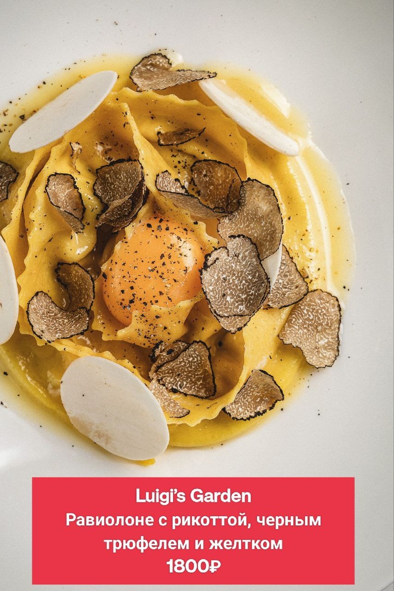 Самый странный вариант из разысканных - домашняя паста Альфредо с кацу из цыпленка со свежим трюфели за 1390₽ из лаунж-бара Umi. Его фото не будет, зато можно увидеть (и попробовать) много другого прекрасного.