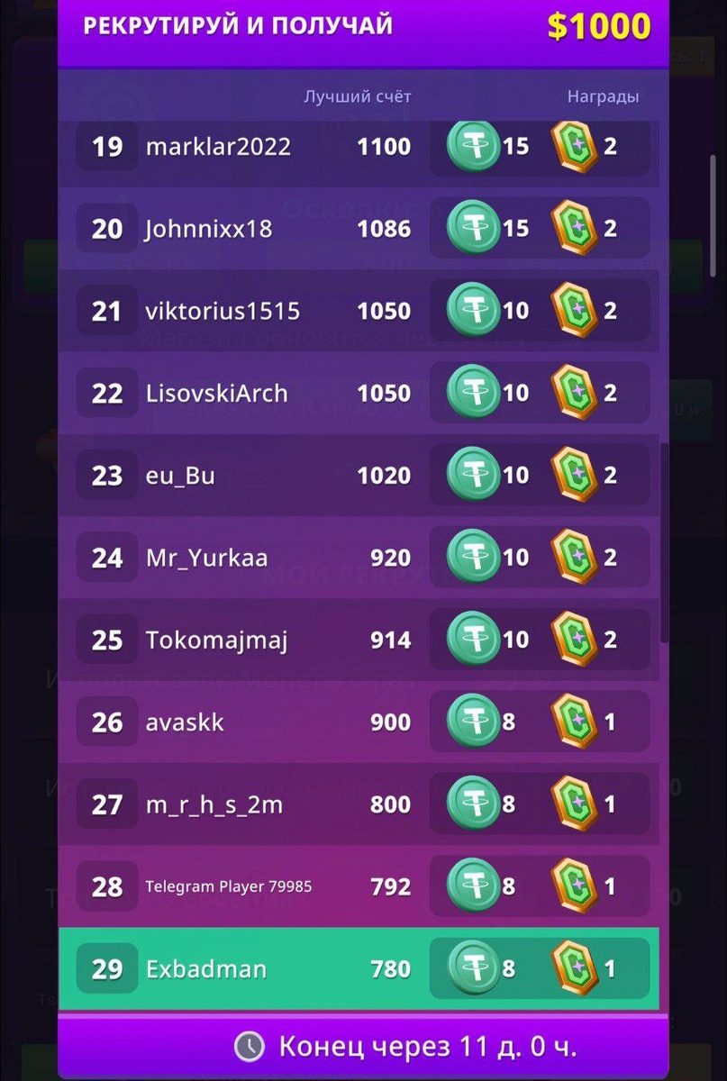 ❤️ Друзья в Rambler Arcade начался новый турнир рефералов, что означает нужно проявлять активность , занимать топ 35 в событиях за зелёные и