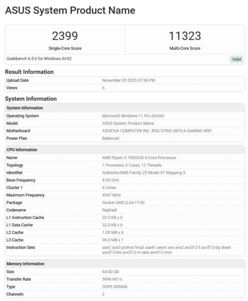 👀 Ryzen 7500X3D засветился в Geekbench В базе Geekbench появились результаты тестирования бюджетного AMD Ryzen 7500X3D, который станет доступным вариантом в линейке чипов с 3D V-Cache под сокет AM5. 📌 Ключевые детали ⚙️ Характеристики Ryzen 7500X3D 🛑 Ядра/потоки: 6 / 12 🛑 Базовая частота: 4.0 ГГц 🛑 Boost: до 4.5 ГГц 🛑 Сокет: AM5 🛑 Архитектура: Zen 4 + 3D V-Cache 📊 Geekbench результаты 🛑 Single-core: 2399 баллов (–7.8% от Ryzen 7600X3D) 🛑 Multi-core: 11 323 балла (–8.3% от Ryzen 7600X3D) Если разница в производительности всего 8 %, стоит ли переплачивать за старшую модель? 🤔 🖥 Заказать сборку ПК в InterPC 🌐 Наши каналы 🗺 #Аmd