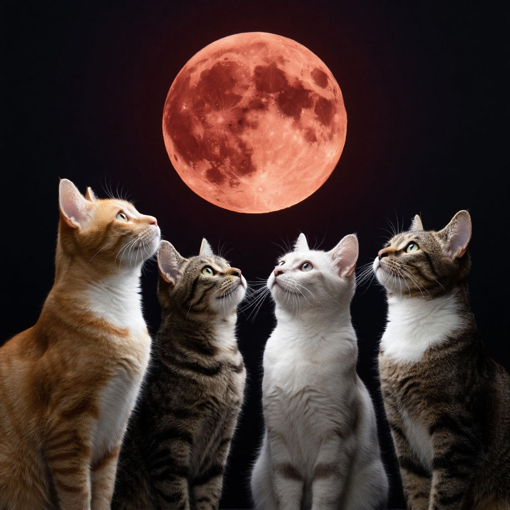 Багровая луна Тёплый вечер опускался на город, окрашивая крыши домов в оттенки янтаря и розового. Я открыла окно в гостиной — в комнату ворвался свежий ветер, пахнущий далёкими полями и прохладой надвигающейся ночи. Именно в такие моменты я особенно остро чувствовала, как сильно люблю этот дом, эту тишину, это ожидание чуда. На подоконнике уже устроились мои верные спутники — пять пушистых комочков, каждый со своим неповторимым характером. Рыжий Симба, гордый и вальяжный, словно настоящий царь зверей, занял центральное место. Чёрный Марс, молчаливый философ, примостился рядом, внимательно наблюдая за угасающим светом. Трёхцветный Тимофей, самый игривый из всех, то и дело подталкивал носом соседей, будто проверяя, не заснули ли они. Ещё два котика уютно свернулись по краям, время от времени приоткрывая глаза, чтобы убедиться — всё в порядке. Я присела рядом, осторожно прижимаясь плечом к тёплому боку Симбы. Он лишь слегка повёл ухом, давая понять, что замечает меня, но не намерен отв