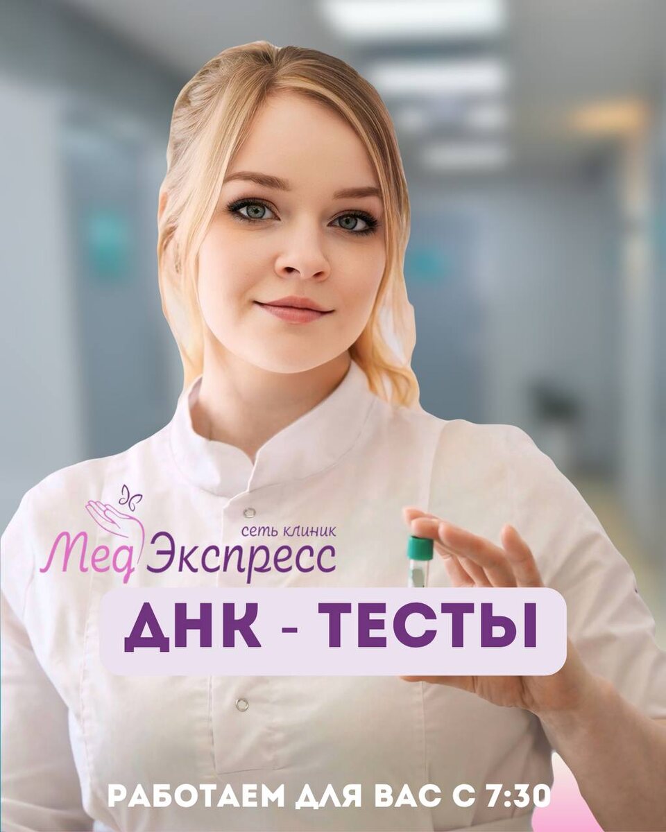 🧬 В лаборатории «МедЭкспресс» вы можете пройти ДНК-тесты любой сложности. Мы проводим исследования: • на установление отцовства и родства, • ДНК-профилирование для участников СВО. Все анализы выполняются на современном оборудовании с высокой степенью точности. Результаты исследований имеют официальный статус и могут использоваться в суде, ЗАГСе и других государственных учреждениях. Мы гарантируем полную анонимность и конфиденциальность процедуры, а также возможность проведения теста без личного присутствия всех участников. Работаем и с нестандартными образцами: волосами, щётками, предметами одежды и другими материалами, содержащими биологический материал. 🧬 ДНК-тест - это не просто результат, это доказанная точность, которой можно доверять. 📍 Подробности и запись на анализ: Брянск, ул. Фокина, 67, 3 этаж +7 (4832) 777-514 Брянск, ул. Дуки, 62 +7 (4832) 77-25-29 ☝️ Работаем для вас с 7:30