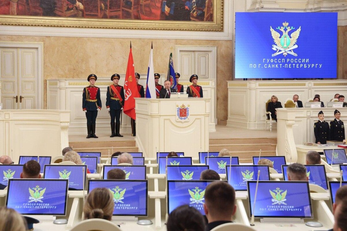 В Большом зале Мариинского дворца состоялось торжественное собрание, посвященное 160-летию образования института судебных приставов в России. С этим значимым юбилеем и профессиональным праздником – Днем судебного пристава сотрудников службы поздравили губернатор Санкт-Петербурга Александр Беглов, председатель Законодательного собрания Александр Бельский и заместитель полномочного представителя президента РФ в СЗФО Роман Балашов. Обращаясь к руководителю Главного управления Федеральной службы судебных приставов по Санкт-Петербургу, главному судебному приставу города Анне Лашковой и всем сотрудникам, губернатор подчеркнул ключевую роль службы в правовой системе. «Уже более полутора столетий ваша служба – важное звено системы правосудия. Вы – гарант исполнения судебных решений, защитники интересов государства и его граждан, – заявил Александр Беглов. – Менялись времена, технологии, законы. Неизменными оставались честность, принципиальность и верность долгу». Глава Северной столицы напомни