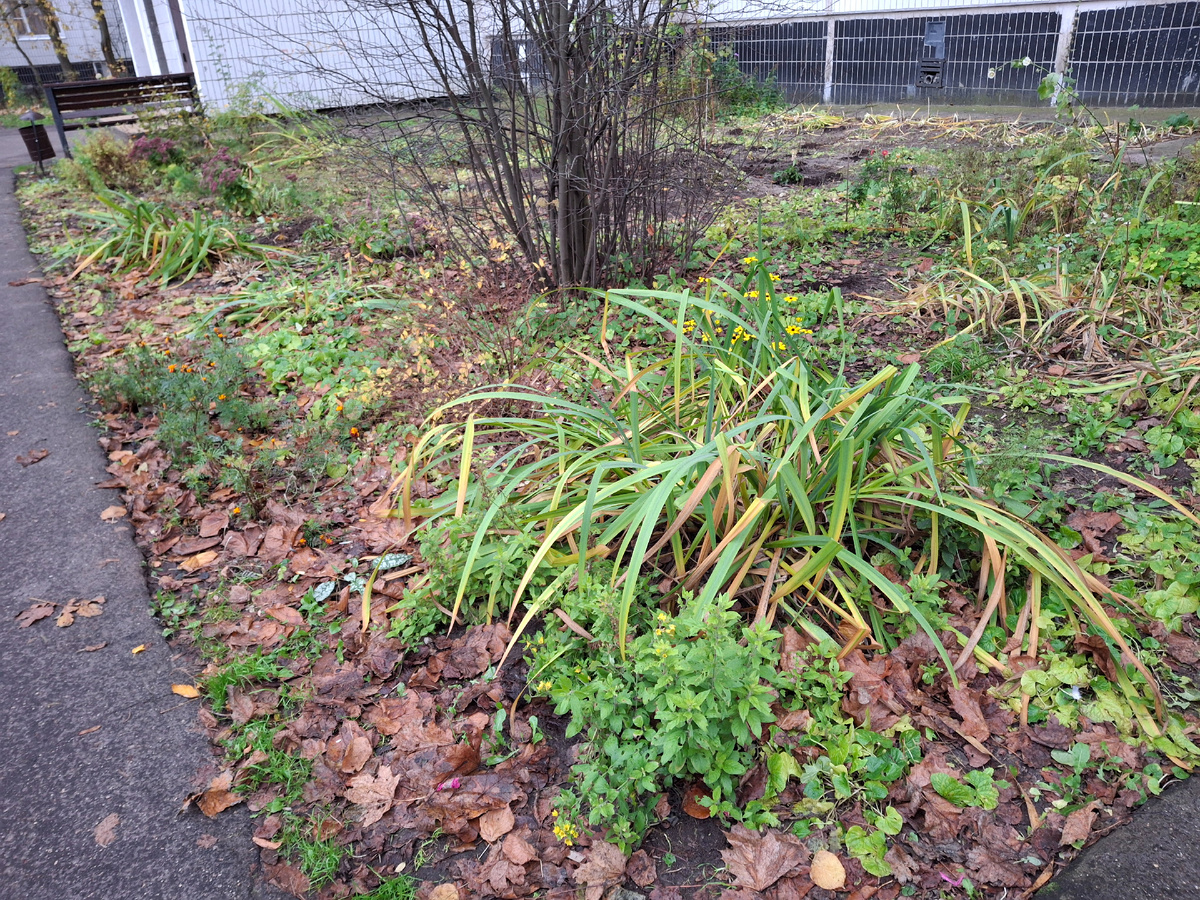 Вид на клумбу с другой стороны. Как обрезать, если листья зеленые?