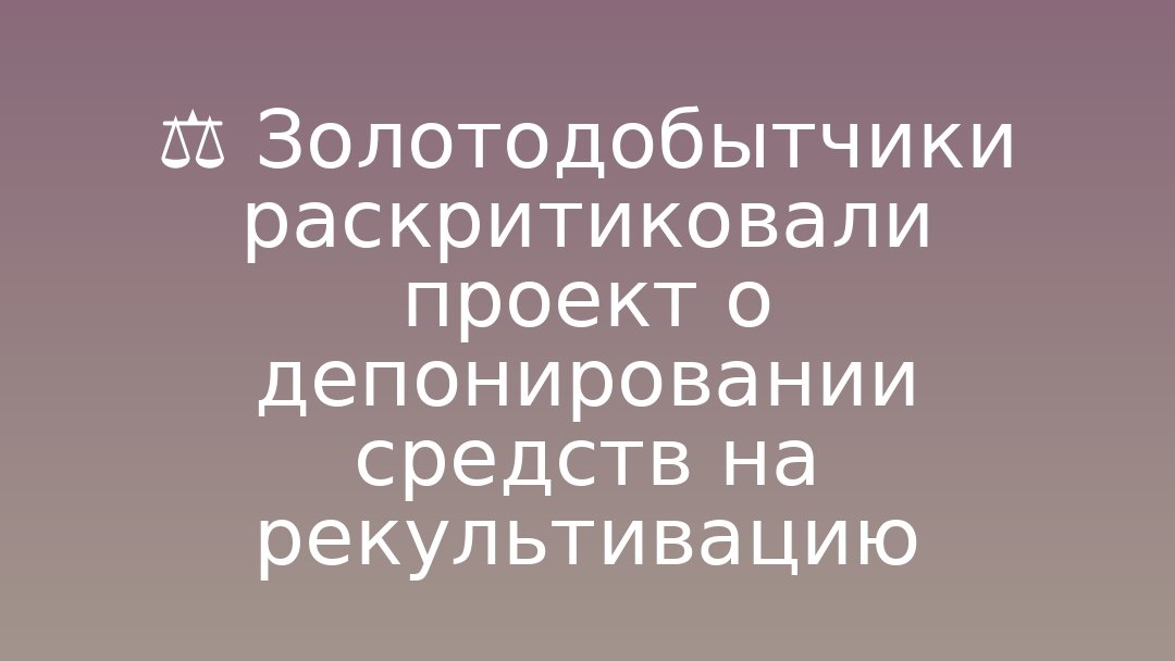 Группа депутатов разработала законопроект, согласно которому лицензии на добычу россыпного золота будут выдаваться при условии предварительного внесения на спецсчета сумм, гарантирующих рекультивацию. По оценке НКО «Союз Золотопромышленников Урала», это потребует от мелких и средних компаний заморозить десятки миллионов рублей на срок отработки месторождений. Председатель артели «Нейва» Михаил Тихонов заявил, что при соблюдении технологии россыпная добыча обеспечивает быструю регенерацию почв.