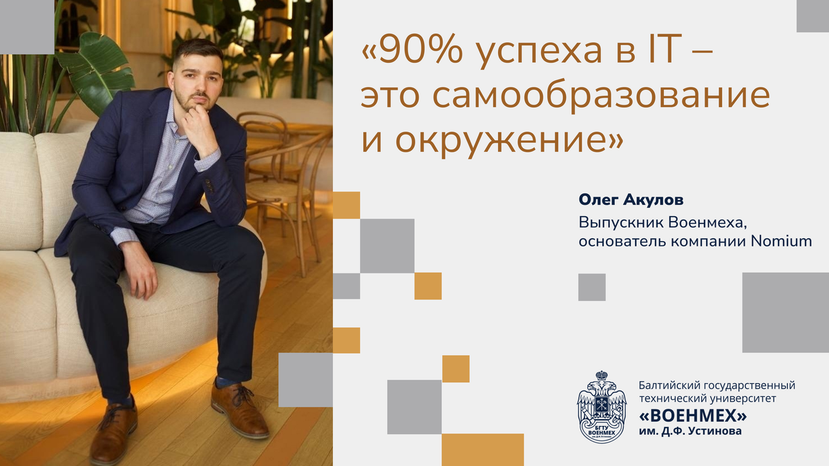 Nomium – это аутсорсинговая IТ-компания, которая уже более 5 лет специализируется на автоматизации в FMCG, разработке решений в области Маркетинга и Blockсhain. Олег Акулов, выпускник Военмеха и один из ее основателей, рассказал о самом запоминающемся проекте, который был реализован, преимуществах Nomium перед конкурентами на российском рынке и о том, насколько важно хорошее образование для IT-специалиста.