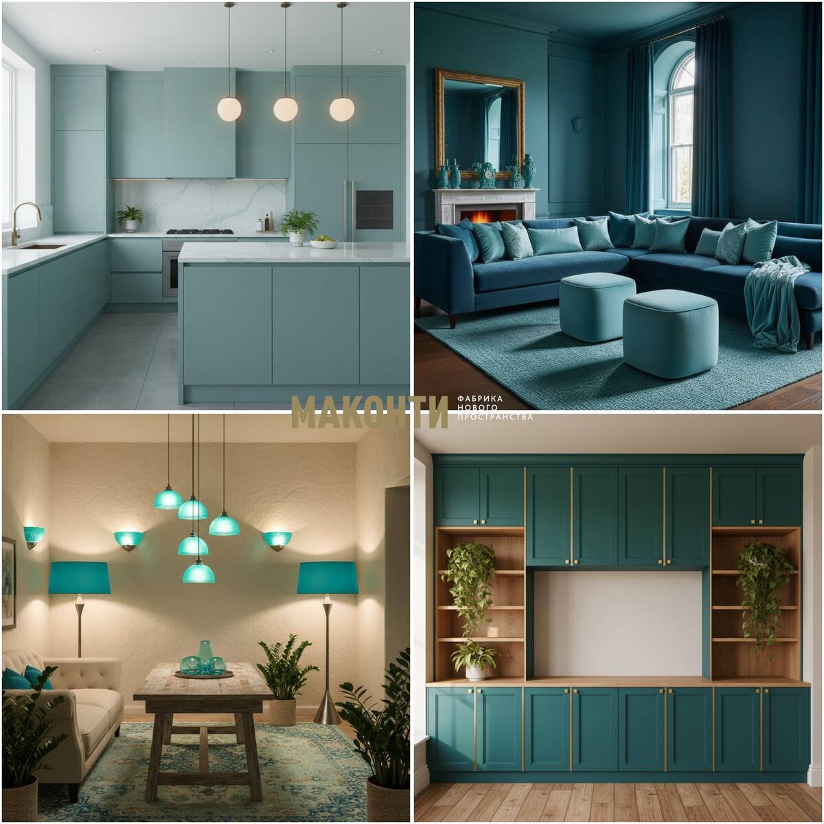 Главный цвет 2026 года — Трансформирующий бирюзовый (Transformative Teal) #маконти_тренды2026 🔔Какой оттенок задаст тон в новом году? По версии WGSN, мирового лидера в области тренд-прогнозирования, главным цветом 2026 года станет Transformative Teal — глубокий бирюзово-синий с мягким зелёным подтоном. 🟤Он символизирует баланс между природой и технологиями, спокойствие и обновление, уверенность и движение вперёд. В интерьере выглядит утончённо, добавляя пространству глубину, гармонию и ощущение свежести. ✔️Как использовать Transformative Teal дома: Кухни в оттенке бирюзового тумана — свежие, стильные, визуально расширяют пространство. Фасады шкафов и встроенные системы хранения — глубокий бирюзовый отлично сочетается с деревом, латунью и матовым белым. Мягкая мебель и текстиль — бархат, велюр, аквамариновые подушки или кресла придают интерьеру благородство. Свет — подвесы, бра и торшеры с бирюзовыми плафонами делают пространство более уютным и сбалансированным. Transformative T
