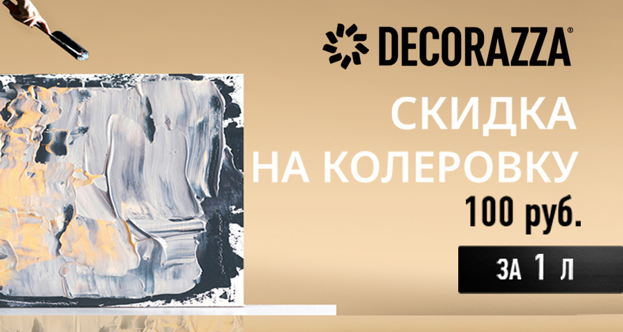 Мы запускаем новую акцию, которая сделает ваш ремонт ещё более индивидуальным и выгодным! До конца декабря 2025 г. вас ждёт скидка 100 рублей за 1 литр на колеровку: приобретая краску, вы можете заколеровать её в любой цвет по каталогу. Идеальное решение для создания уютной атмосферы в доме. Успейте оформить заказ в период действия акции и получите желаемый оттенок по самой выгодной цене! Акция действует в наших фирменных салонах и при заказе на сайте: ПОЛУЧИТЬ СКИДКУ