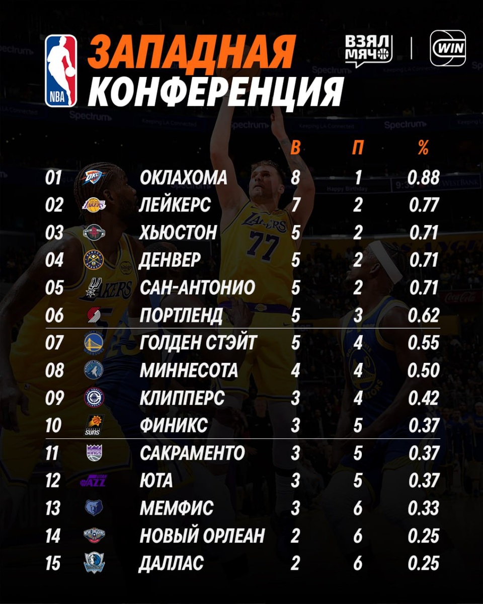 ⛹️♂️ Турнирные таблицы конференций Запада и Востока