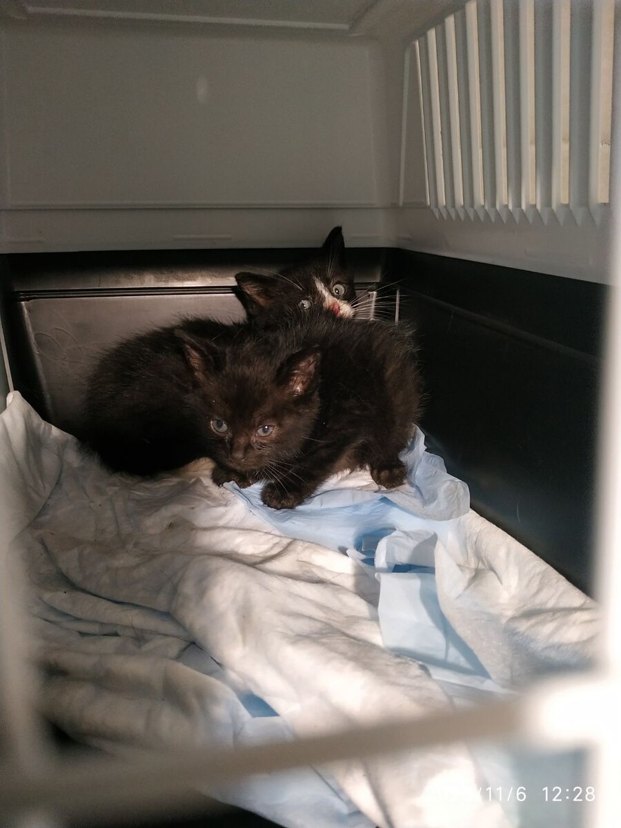 📣 ПОКА + 2 КОТЕНКА 📣 Из трёх малышей сегодня пришли покушать только 2!(🤷 Вот их и забрала! Им недель 6 , очень маленькие и худенькие😔 Черный малыш с поносом(😳 📣 Срочно нужен Корм ГАСТРО для КОТЯТ📣 Малыши пока изолированы и ждут обработку от блох и глистов.😳 А пока промыла глаза и заложила тетрациклинку.🤗 С черного малыша сняли Клеща возле уха!(🤷 Попробуем поймать завтра третьего котёнка, если придет ( Есть еще три 3-х месячных котёнка , двух из которых гоняют и бьют взрослые. Придется забирать((( один очень слабенький.. Как мы будем справляться- не знаю..😔 А малышок то сразу в лоток пошёл!👍 +79969591184 +79114803040