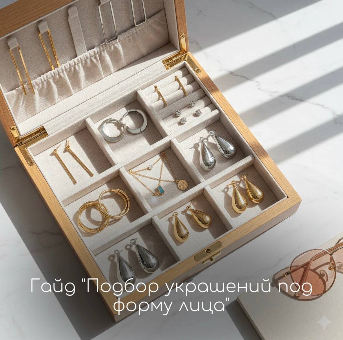 Хочешь, чтобы твои украшения работали на 100%? Сегодня мы разберем главные правила, как подобрать серьги, чтобы они идеально гармонировали с формой твоего лица. Они способны моментально преобразить лицо: подчеркнуть достоинства, скорректировать форму и добавить блеска твоим глазам. Главное — правильно их выбрать! Определяем форму лица: Подойдите к зеркалу, уберите волосы. Посмотрите, какая у вас форма: • Овальное: Лицо слегка сужается ко лбу и подбородку, скулы самая широкая часть. (Считается идеальной, можно почти все!) • Круглое: Лицо примерно одинаково по ширине и длине, без ярко выраженных углов. • Квадратное/Прямоугольное: Ширина лба, скул и челюсти почти одинакова, подбородок угловатый. • Сердцевидное (треугольник вершиной вниз): Широкий лоб и скулы, сужающийся к подбородку. • Грушевидное (треугольник вершиной вверх): Широкая челюсть, сужающаяся ко лбу. Теперь, когда ты знаешь свою форму, давай подберем твои идеальные серьги! 1. Серьги для ОВАЛЬНОГО лица Если у тебя овальное л