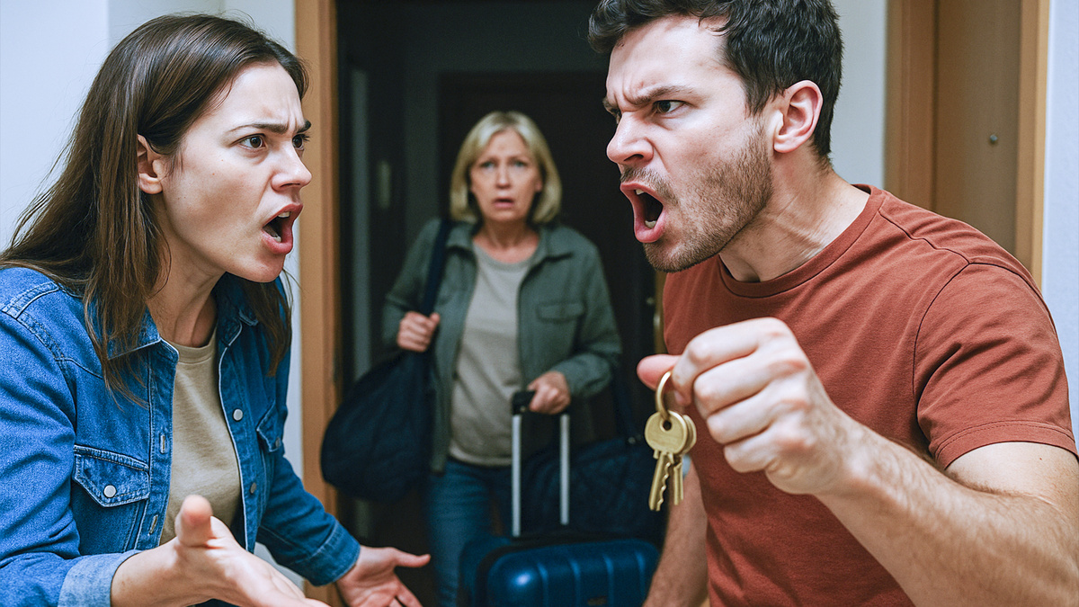 Людмила Васильевна пыталась возражать, но Дмитрий уже тащил свекровь к выходу. Схватил чемодан, вытолкал в коридор. Сумки бросил следом. Хлопнул дверью так сильно, что задребезжало стекло.