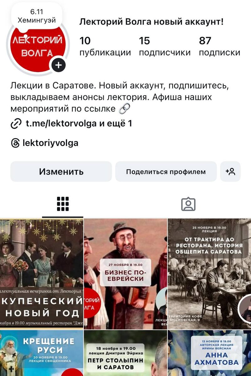 После того как аккаунт Лектория «Волга» взломали в запрещенной сети, я на столько была расстроена, что не хотелось заводить новый… Прошел год и у лектория вновь появилась инста. Все-таки в телеграме многочисленные уведомления от разных каналов часто остаются незамеченными. Так что добро пожаловать, если вы там есть, поддержите подпиской и возможно репостом 🙏 https://www.instagram.com/lektoriyvolga?igsh=MWltaGUzZ2FjZmt1OQ== @lektoriyvolga