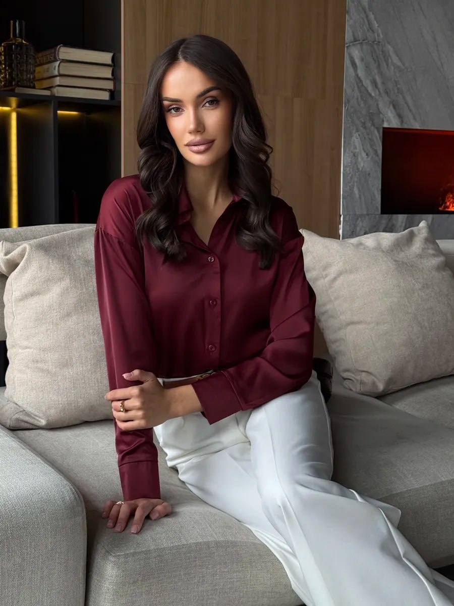 #Осень2025 #Рубашка Шёлковая рубашка Стильная и базовая вещь в гардеробе любой женщины, прямого кроя, подойдет для офиса, праздничных мероприятий. ✍️ Артикул: 256221904 ✨ На выбор 8 цветов! 👌 Размеры: от 42 до 56 🔥 Купили более 1 т. раз! 👉Рубашка тут👈 ___ Как тебе❓ ❤️ / 💔 Топовый look с Wildberries 💶💵💴