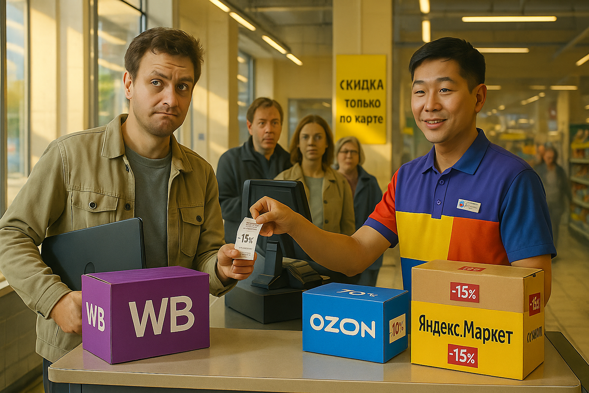 Скидки давно перестали быть просто стимулом для покупателя. На маркетплейсах они стали входным билетом в выдачу — без скидки карточка буквально исчезает из поля зрения. Алгоритм видит активность, а не происхождение товара. И если акция прикреплена к карте «родного» банка площадки — продавец, не участвующий в этой системе, оказывается в тени.