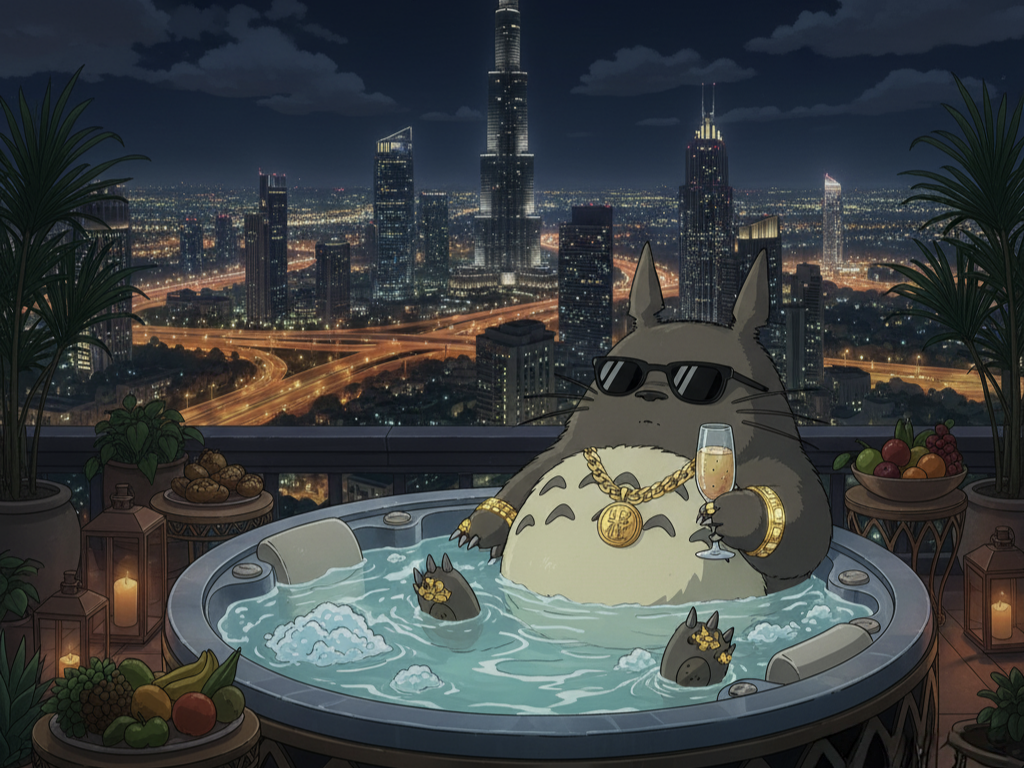 Я скормил нейросети «барыгу» из Дубая. Она нарисовала это в стиле Ghibli