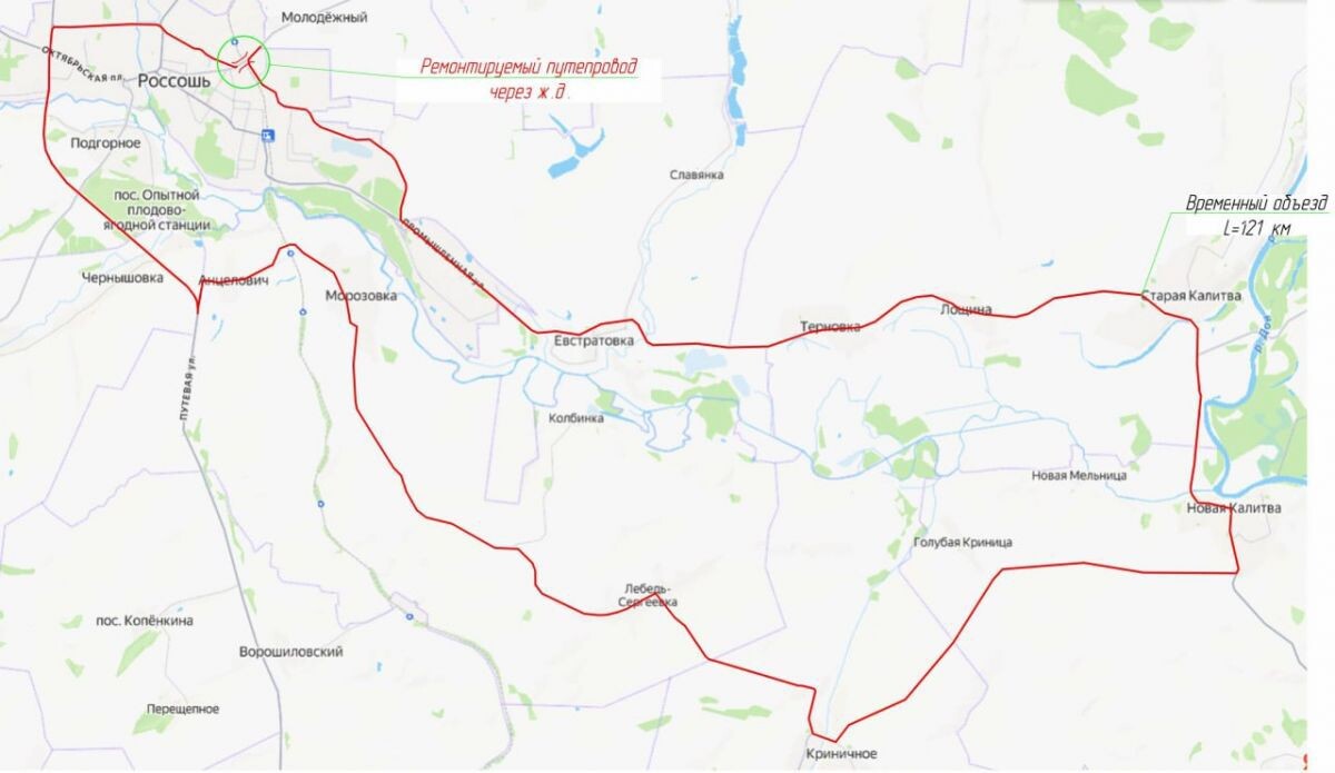В городе Россошь (Воронежская область) в связи с капитальным ремонтом железнодорожного путепровода будет временно ограничено движение автотранспорта.