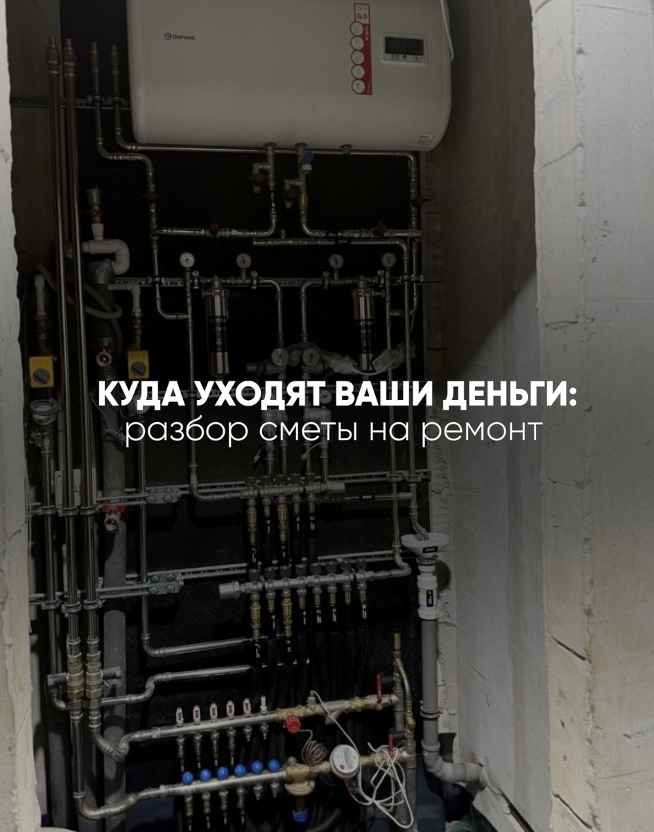 •Инженерные системы: вентиляция и кондиционирование, теплый пол, шумоизоляция, водоснабжение и канализация, электрика. Всё, кроме теплого пола и шумоизоляции — дорогое удовольствие. Один только коллектор («гребёнка») может стоить 100 000₽. •Стяжка и штукатурка