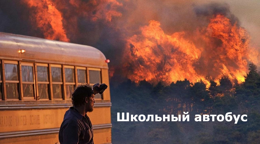 · Жанр: фильм катастрофа · Дата выхода: 03.09.2025 · Страна: США · Режиссёр: Пол Гринграсс (Капитан Филлипс, 2013) · В главных ролях: Мэтью Макконахе (Далласский клуб покупателей, 2013), Америка Феррера (Барби, 2023) · Продолжительность: 129 · Сценарий: Брэд Ингелсби, Пол Гринграсс, Лиззи Джонсон (основана на документальной книге Лиззи Джонсон «Рай: борьба одного города за выживание во время американского лесного пожара» (2021). А вот и «Школьный автобус» с Мэтью Макконахе подъехал. Не понимаю, какого хрена в русском переводе «Заблудившийся» стал «Школьным», когда оригинальное название явно точнее соответствует сюжету фильма. Коротко о завязке сюжета. Во-первых, нужно упомянуть, что картина основана на документальной книге Лиззи Джонсон «Рай: борьба одного города за выживание во время американского лесного пожара» (2021). Сюжет разворачивается в Калифорнии в 2018 году. Разбушевавшийся лесной пожар поглощает город Парадайс и прилегающие территории, превращая их в смертельную западню В