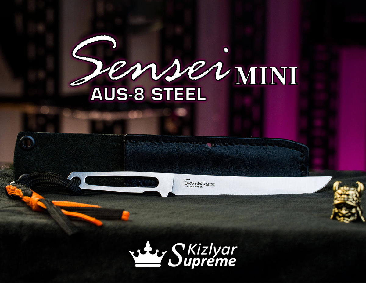 Нож Sensei Mini — это яркий представитель семейства «Mini» от Kizlyar Supreme. Он полностью повторяет форму и пропорции харизматичного ножа Sensei, который за более чем десять лет на рынке набрал огромное число фанатов и остался одним из самых продаваемых в линейке больших лагерных ножей. Несмотря на то, что нож относится к семейству Mini, он может похвастаться весьма серьезным клинком длиной 100 мм в форме правильного японского танто. Прямые спуски и тонкое сведение намекают нам на отличный контролируемый рез. Скелетная рукоять Sensei Mini длиной 67 мм «заточена» под хват на три пальца. Небольшой ограничитель спереди защищает руку от соскальзывания на лезвие, а для улучшения хвата производитель уже в базе комплектует нож темляком, который становится продолжением рукояти, а также упрощает извлечение ножа из ножен. Ножны у этого малыша тоже необычные. Они выполнены из дорогой качественной кожи в форме чехла-футляра и отлично помещаются в маленький карман джинсов или тактических брюк, од