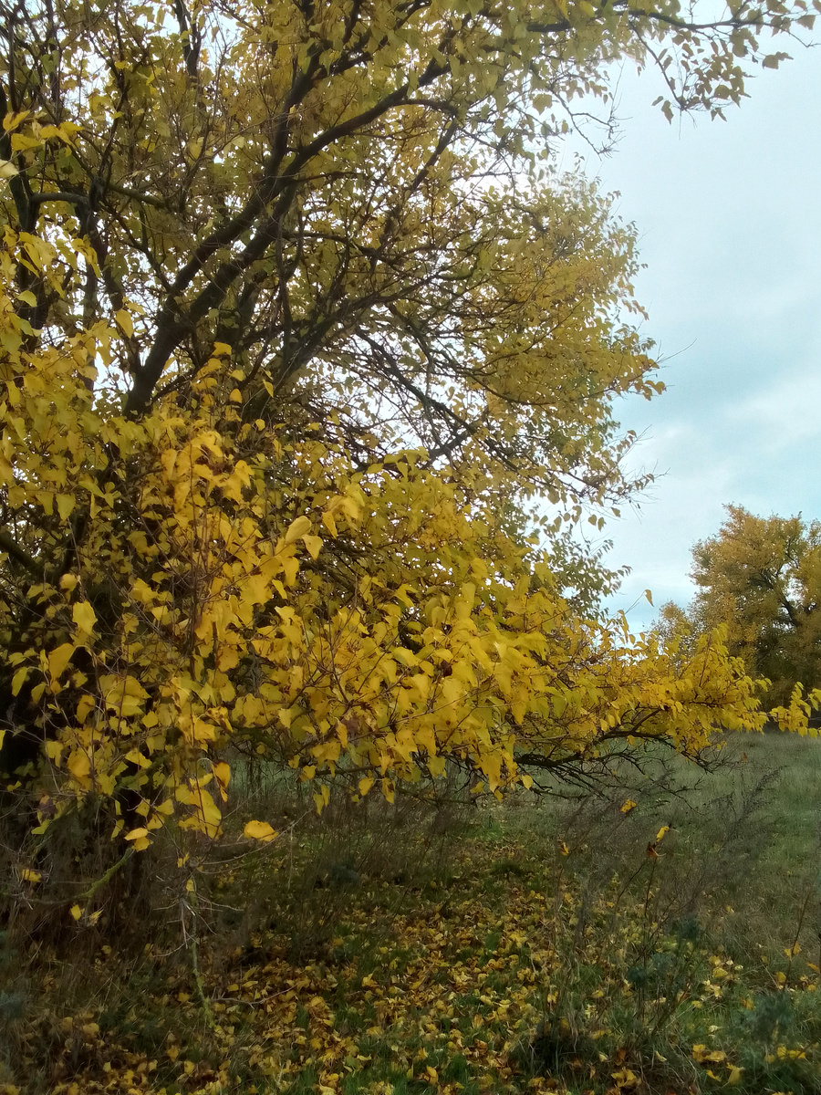 Акация тоже желтеет.