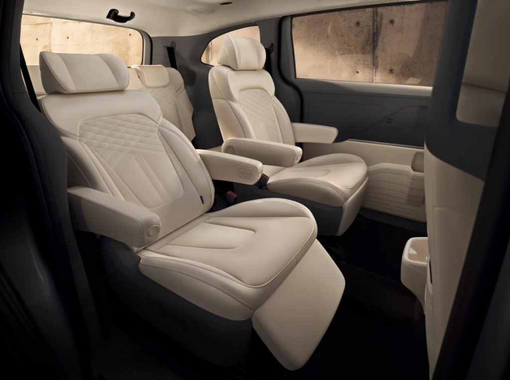 - Второй ряд оснащен капитанскими креслами с электроприводом и подлокотниками.