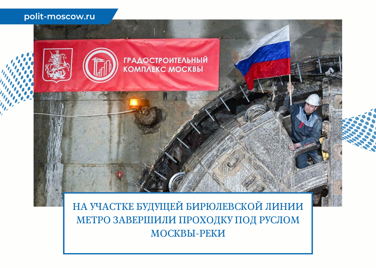 Тоннелепроходческий комплекс (ТПМК) прошел участок под руслом Москвы-реки на участке строящейся Бирюлевской линии метро. «Проходка правого перегонного тоннеля протяженностью свыше 1,6 тысячи метров между строящимися станциями “Остров мечты” и “Кленовый бульвар” Бирюлевской линии метро началась летом этого года. На участке работает шестиметровый щит “Елена”. Проходка идет в сложных гидрогеологических условиях — в смешанных водонасыщенных грунтах. Самым ответственным стал участок протяженностью 210 метров под руслом Москвы-реки. Чтобы не допустить рисков затопления и обрушения тоннеля, специалисты провели тщательные подготовительные работы: обследовали территорию и запроектировали работы», — отметил Владимир Ефимов.
