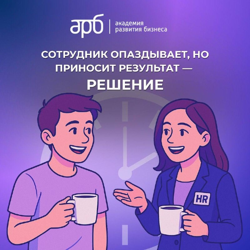 🔠 Разбор ситуации: сотрудник опаздывает, но приносит результат Ранее мы предложили вам подумать, как поступить, если сотрудник систематически опаздывает, но стабильно выполняет KPI и решает сложные задачи. Давайте разберём варианты. 1️⃣ Жёсткая дисциплина (разнос, штрафы, выговоры) ❌ Такой подход может укрепить дисциплину, но часто приводит к потере лояльного сотрудника, падению мотивации и напряжению в команде. 2️⃣ Игнорировать проблему ❌ Закрывать глаза на опоздания кажется безопасным, но формирует прецедент: остальные сотрудники могут воспринять это как двойные стандарты, что демотивирует и разрушает культуру компании. 3️⃣ Беседа и поиск решения ✔️ HR инициирует доверительную беседу, выясняет причины опозданий и обсуждает возможные варианты: - гибкий график; - компенсация времени; - корректировка KPI. Почему это работает: Сохраняется ключевой сотрудник и его вклад в бизнес. Поддерживается корпоративная культура и справедливость. HR действует стратегически: ищет баланс между р