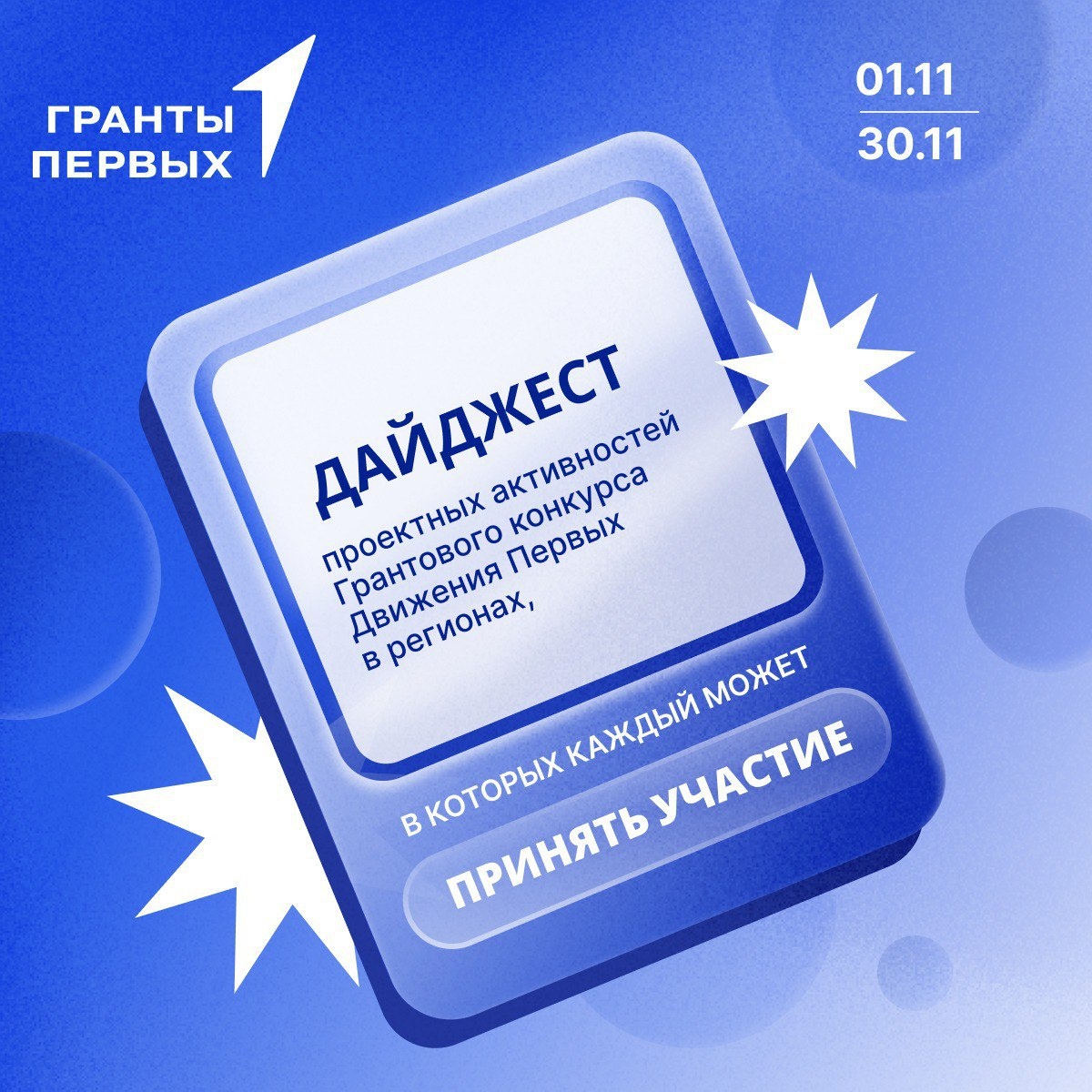 Настало время узнать какие #ГрантыПервых тебя ждут в ноябре 🎐 Мы собрали для тебя ближайшие события Первых — фестивали, интенсивы, марафоны, встречи и новые возможности. Заглядывай в нашу подборку, выбирай свой регион и присоединяйся к участию 🔼 До встречи на мероприятиях Грантов Первых!
