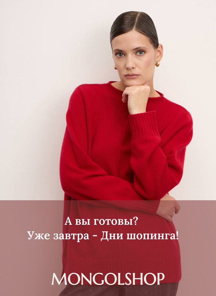 Уже завтра — Дни шопинга в Mongolshop! Ваш любимый кашемир, новые коллекции и несколько приятных поводов порадовать себя. С 7 по 11 ноября действует скидка 15% на весь ассортимент — от мягких свитеров до уютных аксессуаров из монгольского кашемира, пуха яка и верблюжьей шерсти. * скидка не распространяется на товары до 1000 рублей Пусть этот ноябрь будет по-настоящему тёплым. Выберите то, что подарит вам комфорт и гармонию. 🧶 Перейти к покупкам