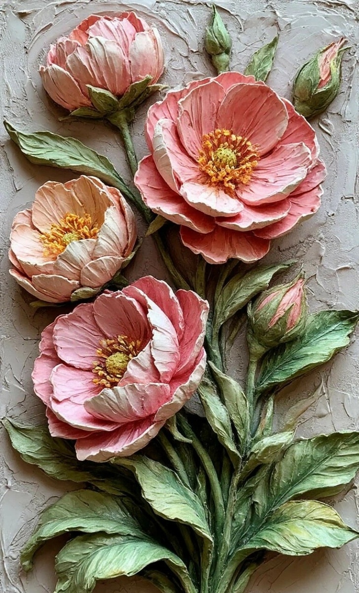 В мире современного искусства постоянно появляются новые, захватывающие направления, расширяющие границы привычного. Одним из таких ярких представителей является скульптурная живопись – направление, которое смело объединяет в себе выразительность плоской живописи и тактильную глубину объемной скульптуры. Суть техники: магия текстурной пасты Главный секрет скульптурной живописи кроется в использовании специальной текстурной пасты. Именно она, наносимая на основу (холст, картон, дерево) с помощью мастихина, становится строительным материалом для объемных форм. Мастихин, инструмент, напоминающий шпатель, позволяет художнику создавать разнообразные рельефы, придавая работе неповторимую фактуру. Различные способы нанесения пасты, игра с ее плотностью и текстурой, позволяют добиваться удивительных эффектов. Так, можно создавать нежные, полупрозрачные лепестки цветов, фактурные листья с прожилками, реалистичные бутоны или даже сложные архитектурные элементы. Каждый мазок мастихина – это шаг