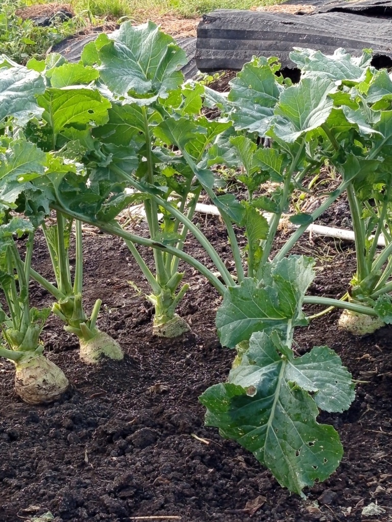 репа вовсю “лопушилась”, сеянцы брюквы только-только сформировали 3
