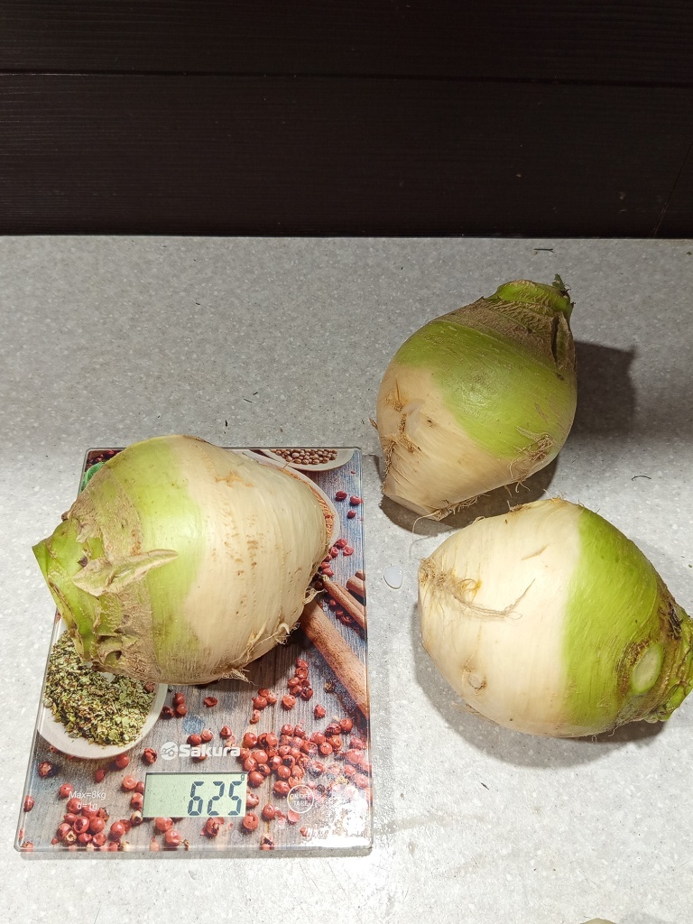 озеленяется, нижняя остается белой. Корнеплод округлый,массой 500-600 г.
