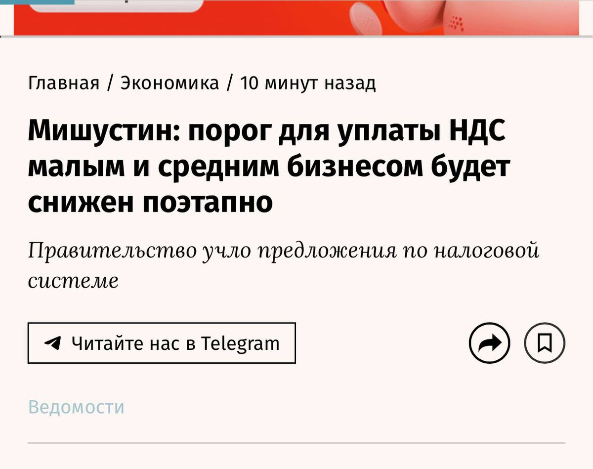 🙄 Кабмин предлагает сделать поэтапные изменения по порогам уплаты НДС: до 20 млн руб. в 2026-м г., 15 млн руб. в 2027-м г. и 10 млн рублей в 2028-м г. Источник … Хорошо конечно учли предложения предпринимателей 🙄