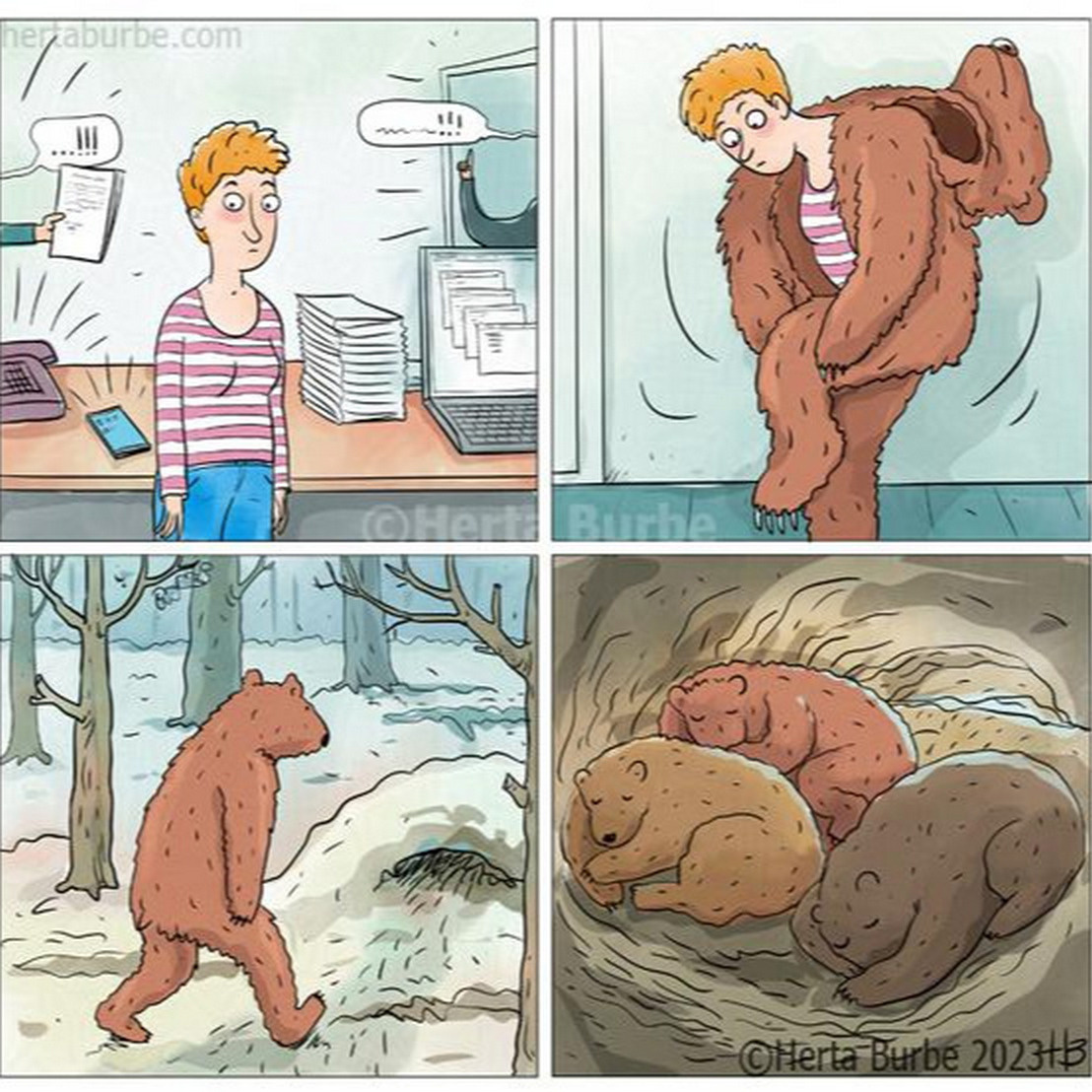 Есть одна художница, в блог которой я захожу всегда, когда настроение так себе. Ведь у неё самые душевные рисунки, комиксы с сильно выраженным терапевтическим эффектом. Десять минут смотришь новые работы Герты из Литвы, и настроение гарантировано становится лучше. Не понимаю, как у неё так получается, но работает! Проверьте сами, если мне не верите. Про литовскую художницу Герту Бурбе я рассказывал уже дюжину раз – поищите у меня в блоге, если интересно. Это уже довольно взрослая женщина, получившая признание и у себя на родине, и по всему миру. В своих смешных комиксах она использует минимум слов, поэтому они без проблем «заходят» в любой точке света: хоть в Петрозаводске, хоть в Будапеште, хоть в Киото. И везде люди пишут, что такие рисунки реально улучшают настроение и снижают стресс. Поскольку я – практикующий психолог, мне подобное интересно вдвойне. Сейчас осень и многие жалуются на "бесячее" состояние: ты вроде отдыхал, отдыхал и должен был отдохнуть, а всё равно без сил! Больши