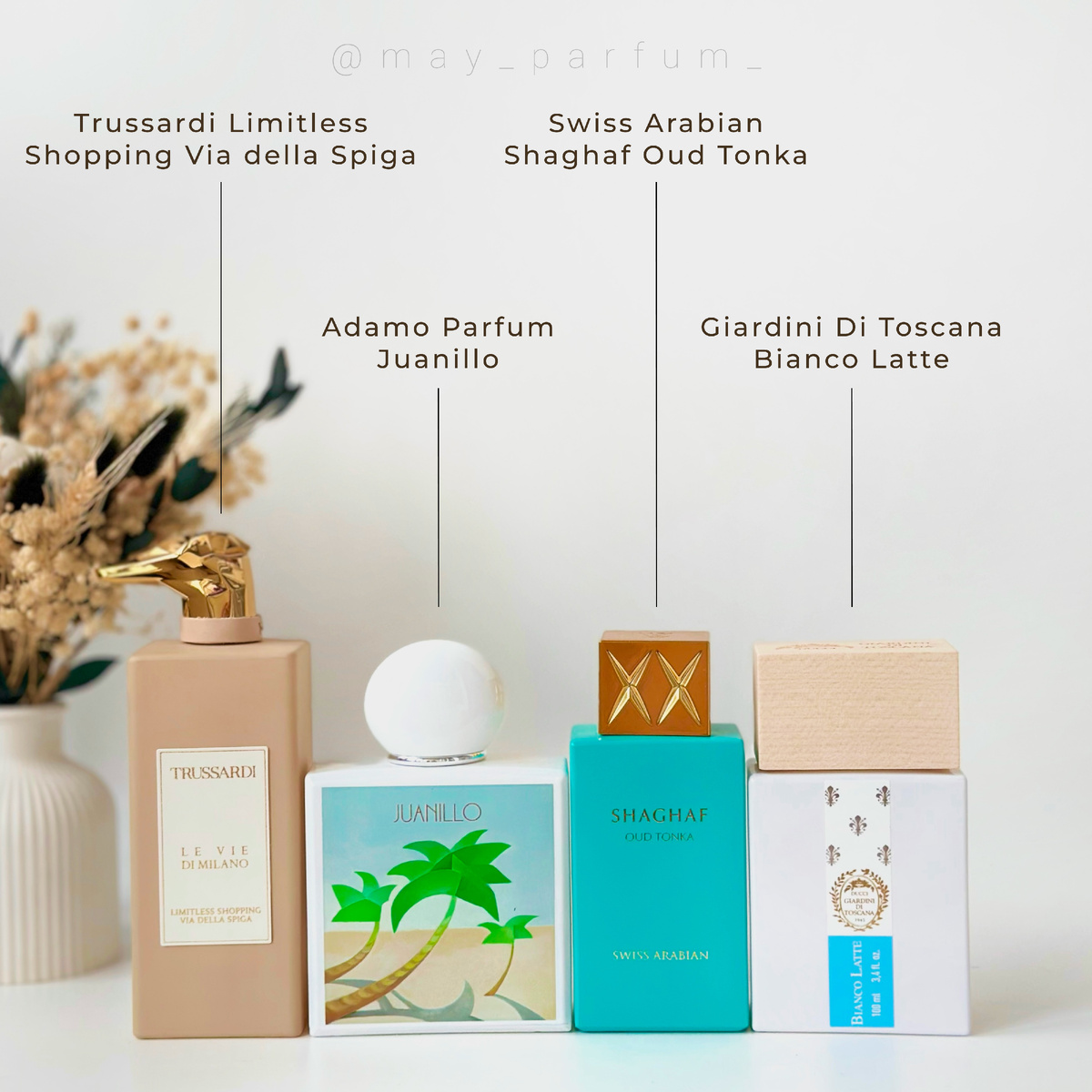 🕯️ Хочется укутаться в аромат, как в мягкий кашемир? Попробуйте Shaghaf Oud Tonka - вишнёвая косточка, миндаль с лёгкой горчинкой и сливочные бобы тонка создают ощущение тепла и уюта. Ваниль шепчет тихо, не перебивая - восток без крика, интеллигентный и изящный. Как Velvet Tonka, но с чуть более глубоким, бархатным звучанием ❤️ Хочу попробовать✅ 💫 Хотите аромат, который звучит как солнечное утро в Милане? Trussardi Limitless Shopping Via della Spiga - это запечённые яблоки в мёде, лёгкая ванильная пудра и освежающая кислинка. Воздушный, сбалансированный, женственный.На коже раскрывается мягким шлейфом - особенно красиво на свежем воздухе 🍏✨ Понравится тем, кто любит Musk Kashmir, Fleur de Santal, Messy Sexy, Vanilla Vibes. Хочу попробовать✅ .🍯 Предупреждение: этот аромат вызывает сладкую зависимость. Bianco Latte - как ванильное облако с карамелью и тёплым латте. Густой, нежный, съедобно-соблазнительный. Держится часами и делает настроение таким же тёплым, как утро с кофе ☕✨ Хо