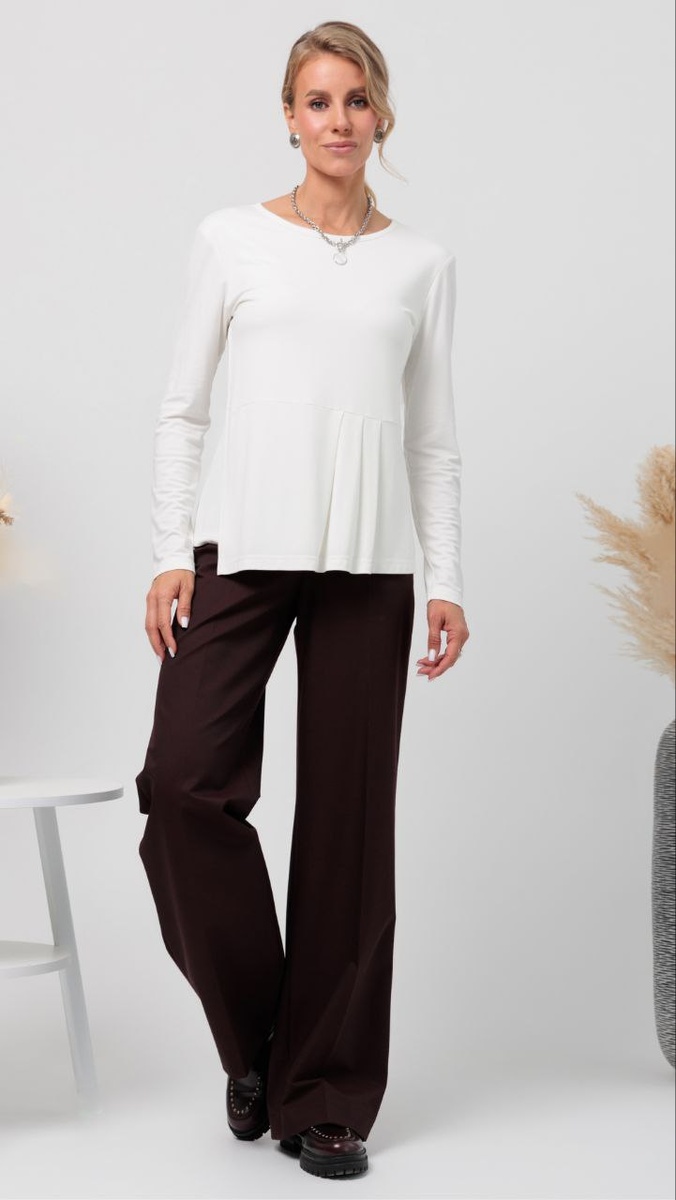 Наш новый белый лонгслив – идеальное сочетание элегантности и комфорта. Полуприлегающий крой мягко подчеркнет вашу фигуру, а нежная ткань подарит ощущение уюта в любое время года. Изящный волан по низу добавляет образу женственности и утонченности, делая его прекрасной основой для повседневных стилизаций. Попробуйте сочетать его с широкими брюками глубокого винного оттенка для создания эффектного образа. С BUSINESS LINE вы всегда будете выглядеть стильно и уверенно! Для заказа пишите нам в WhatsApp: https://wa.me/message/GESSL37P7LULC1