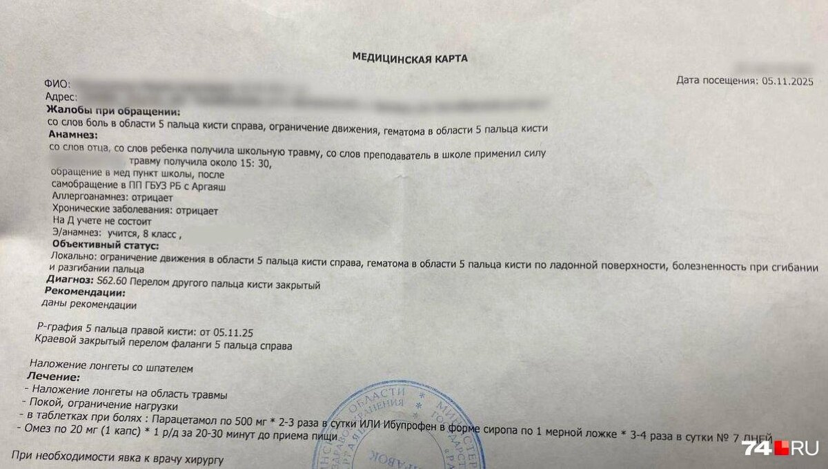 Отец школьницы из Аргаяша обвинил учителя в том, что он сломал палец его дочери