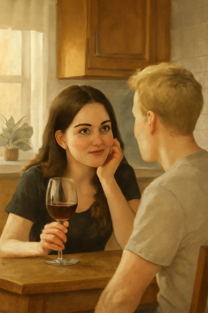 Они смеялись, спорили, делились каждым мелким моментом, потому что мир казался понятным и большим. Она могла сидеть на кухне, пить вино и рассказывать, как прошел её день. Он слушал, иногда вставлял пару фраз, и всё было без напряжения.
