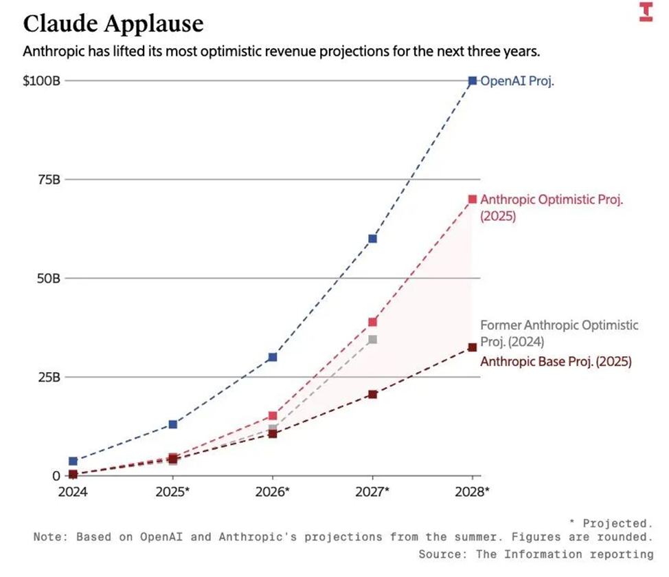 Согласно материалу The Information, стартап Anthropic пересмотрел прогнозы по выручке в сторону повышения и задаёт амбициозную дорожную карту — в результате компания быстро превращается в одного из серьёзнейших конкурентов OpenAI и привлекает внимание рынков и инвесторов.