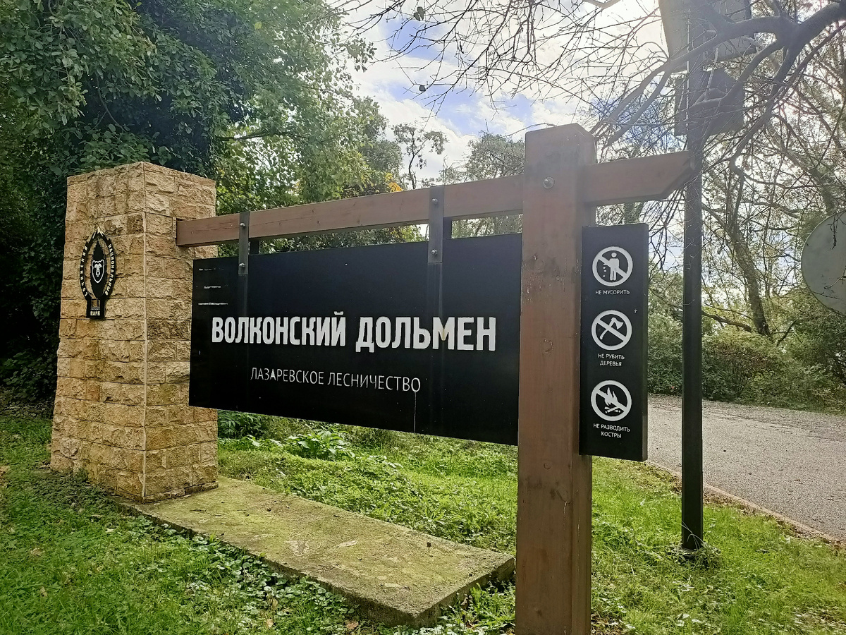 Экологическая тропа "Волконское ущелье"... Наверное, самая доступная, если бы не длинная лестница, ведущая вниз, в глубину ущелья, к пункту пропуска, она бесконечная. Экологическая тропа имеет протяженность около 1,5 километров в обе стороны, она проходит в ущелье горного ручья Годлик. Но спускаются сюда не из-за ручья... Сюда идут, чтобы увидеть самый большой дольмен-монолит. Огромное чрево, выдолбленное прямо в монолите скалы, а сверху оформленное как настоящий дольмен из плит, это единственный на Кавказе и сохранившийся до наших дней дольмен созданный таким образом. Дольмен создан в огромной скале серого песчаника. К нему можно подняться и некоторые даже забираются внутрь через круглое сужающееся отверстие диаметром 45-50 см. Чуть дальше Сероводородный минеральный источник. Вода в котором минерализирована настолько, что пить её не рекомендуют. Согласно анализу, суммарная минерализация воды составляет 0,8 грамм на литр. В воде преобладают натрий, хлор и сероводород. В конце маршру