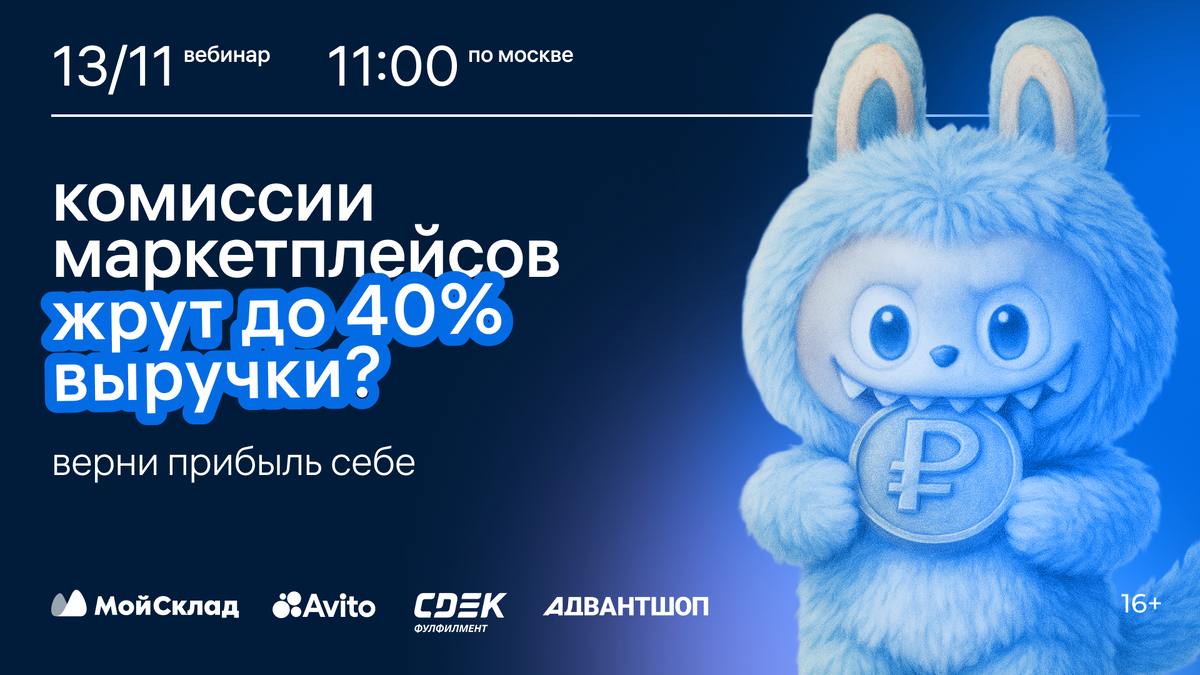 Комиссии на маркетплейсах растут, правила площадок ужесточаются, и теперь далеко не каждый селлер может выйти «в ноль», не говоря уже о плюсе. Но есть альтернатива: собственные интернет-магазины и инструменты, которые помогают получать клиентов напрямую. 13 ноября в 11.00 (по МСК) пройдет бесплатный вебинар МойСклад «E-commerce в 2026: как перестроить бизнес, чтобы расти в кризис». Если вы: Этот вебинар сэкономит вам месяцы проб и ошибок. Спикерами будут эксперты eCommerce: Адвантшоп, МойСклад, Авито и CDEK. Вместе с ними участники обсудят: В программе — реальные кейсы и практические инструменты, которые можно применить уже на следующий день. Чтобы записаться на вебинар, переходи по этой ссылке — https://advnt.ru/7rl8Ht