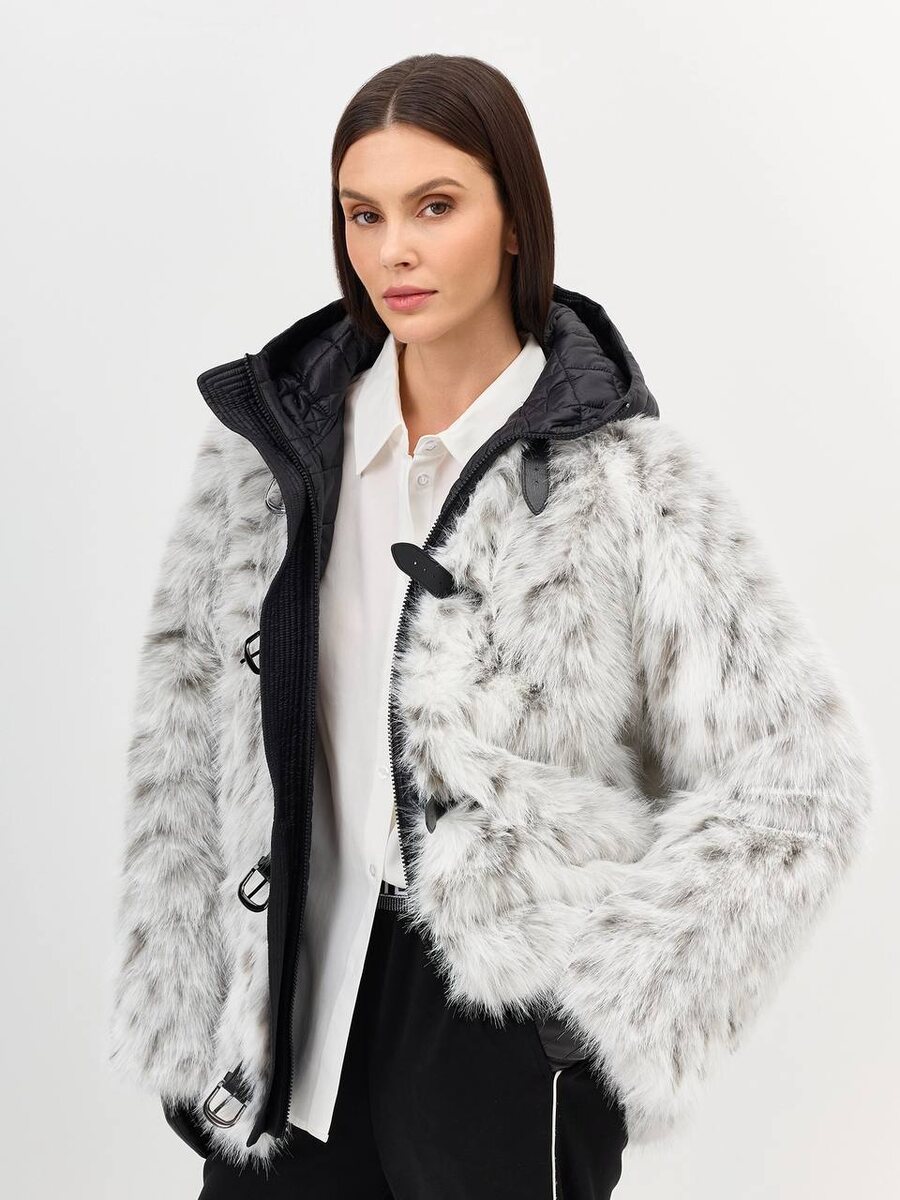 СНОВА В НАЛИЧИИ ⭐️ХИТ Куртка из меха с анималистичным принтом. Свободный силуэт. Спущенная линия плеч. Нейлоновый воротник стойка дополнен капюшоном. Застежка на нейлоновую планку с пряжками и молнией. Боковые карманы в швах. Кулиса по низу для защиты от ветра. Подкладка 100% нейлон. Наполнитель синтепон Размеры от 44 до 56 24.800₽