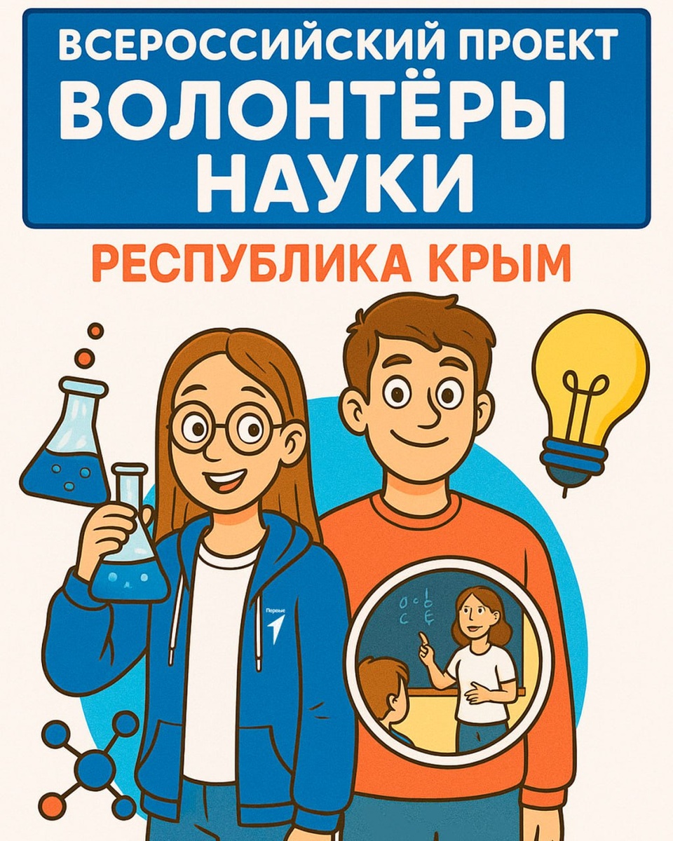 💡 Волонтёры науки — Крым подключается! 🔬 Хочешь стать частью команды, которая делает науку ближе и понятнее каждому? 📚 Тогда тебе — во Всероссийский проект «Волонтёры науки» от Движения Первых! 👩🔬 Здесь ты сможешь: — проводить опыты и эксперименты вместе с детьми и подростками; — рассказывать о науке просто и увлекательно; — участвовать в научных фестивалях, мастер-классах и экспедициях; — получить опыт, который вдохновляет и реально меняет будущее! 📍 Республика Крым уже в деле — присоединяйся и ты! 🧭 Регистрация открыта: 👉 https://наука.будьвдвижении.рф/ #ВолонтёрыНауки #ДвижениеПервых #ДвижениеПервыхКрым