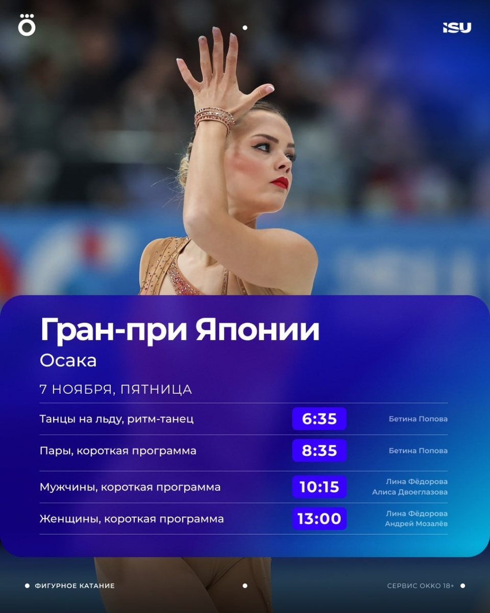 7 ноября с 06:35 Фигурное катание. Гран-при. Япония (изображение: okko.sport)