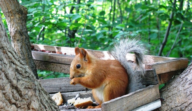 Здесь же среди деревьев и людей обитали ручные белочки. Они безбоязненно подбегали к людям в надежде подкормиться. И те обязательно угощали их нехитрым лакомством.