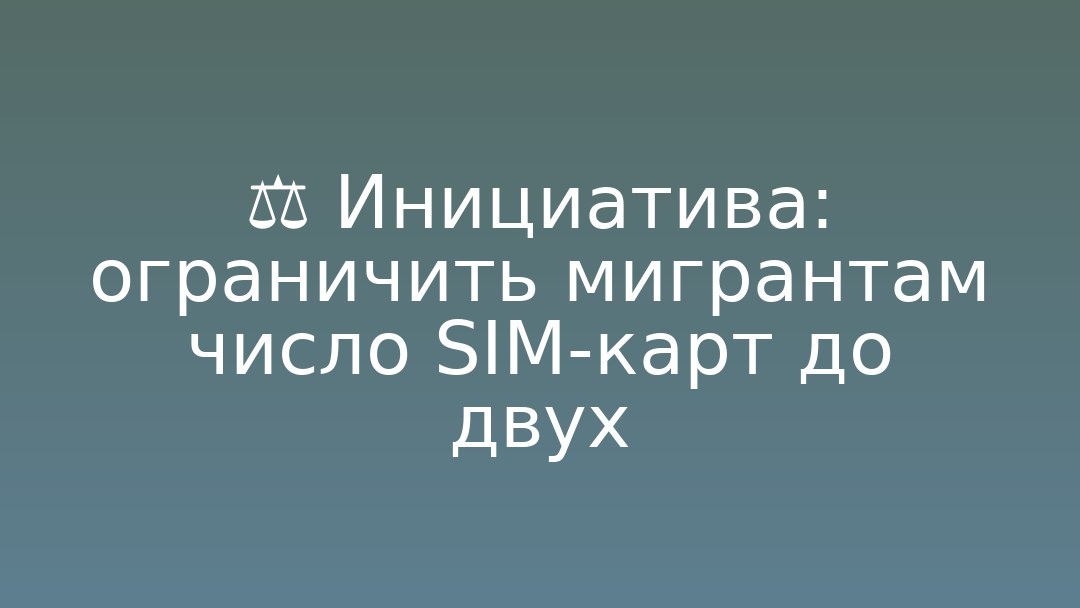 Депутаты фракции «Новые люди» внесли в Госдуму законопроект о снижении лимита зарегистрированных SIM-карт для мигрантов с 10 до 2 на человека. В пояснительной записке указано, что мера направлена на борьбу с мошенничеством и злоупотреблениями, не создавая препятствий добросовестным пользователям.